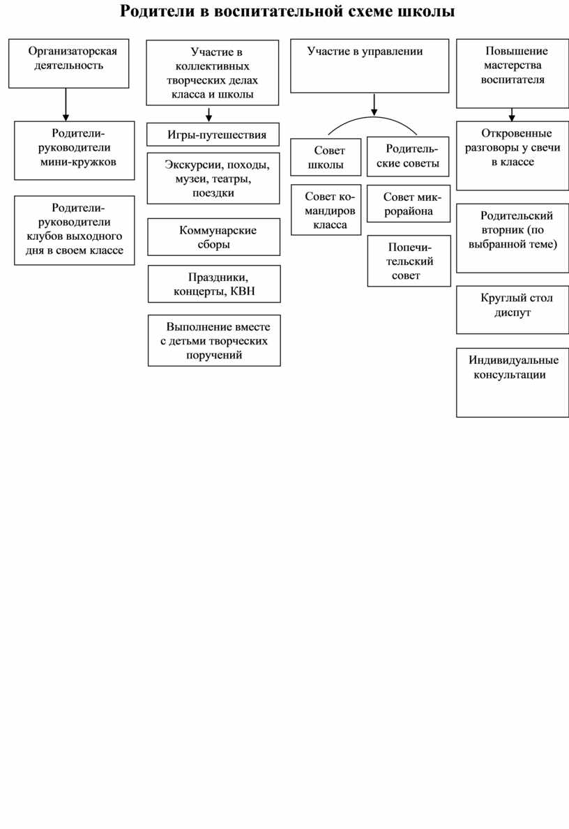 осуществление индивидуальной работы с родителями, привлечение родителей к участию во внеклассной работе; организация и проведение общешкольных родительских собраний.