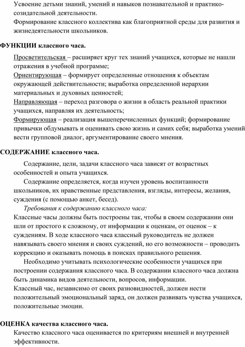 Чаще всего классный час выполняет все три функции одновременно.