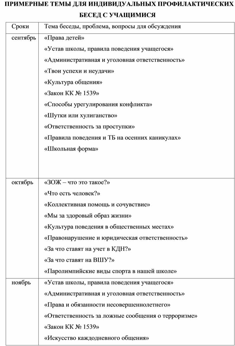 проведение профилактической работы по предупреждению правонарушений, по пропаганде здорового образа жизни; привлечение учащихся к общественно полезному труду, к соблюдению правил школьного режима.