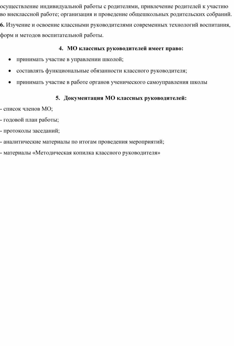 5. В своей работе МО подотчетно педагогическому совету.