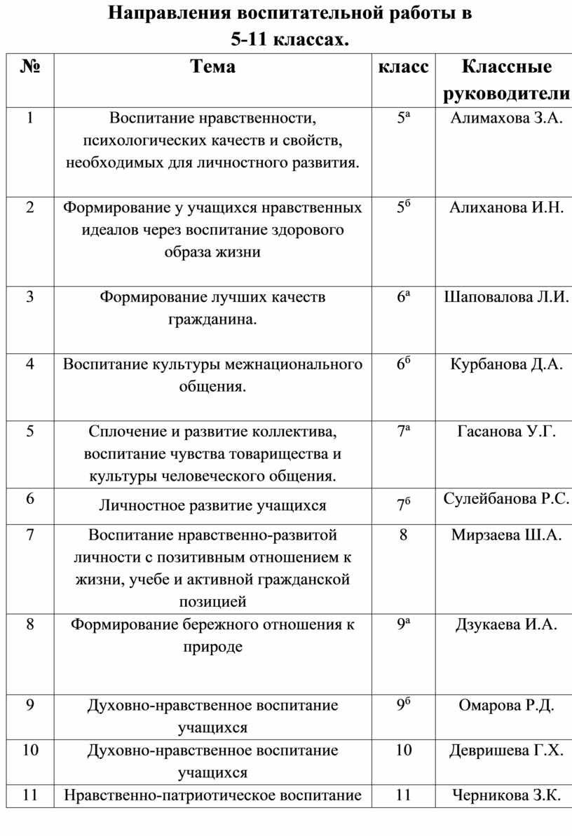 1. Руководство и помощь классным руководителям в планировании, организации и оценке эффективности воспитательного процесса в классном коллективе.