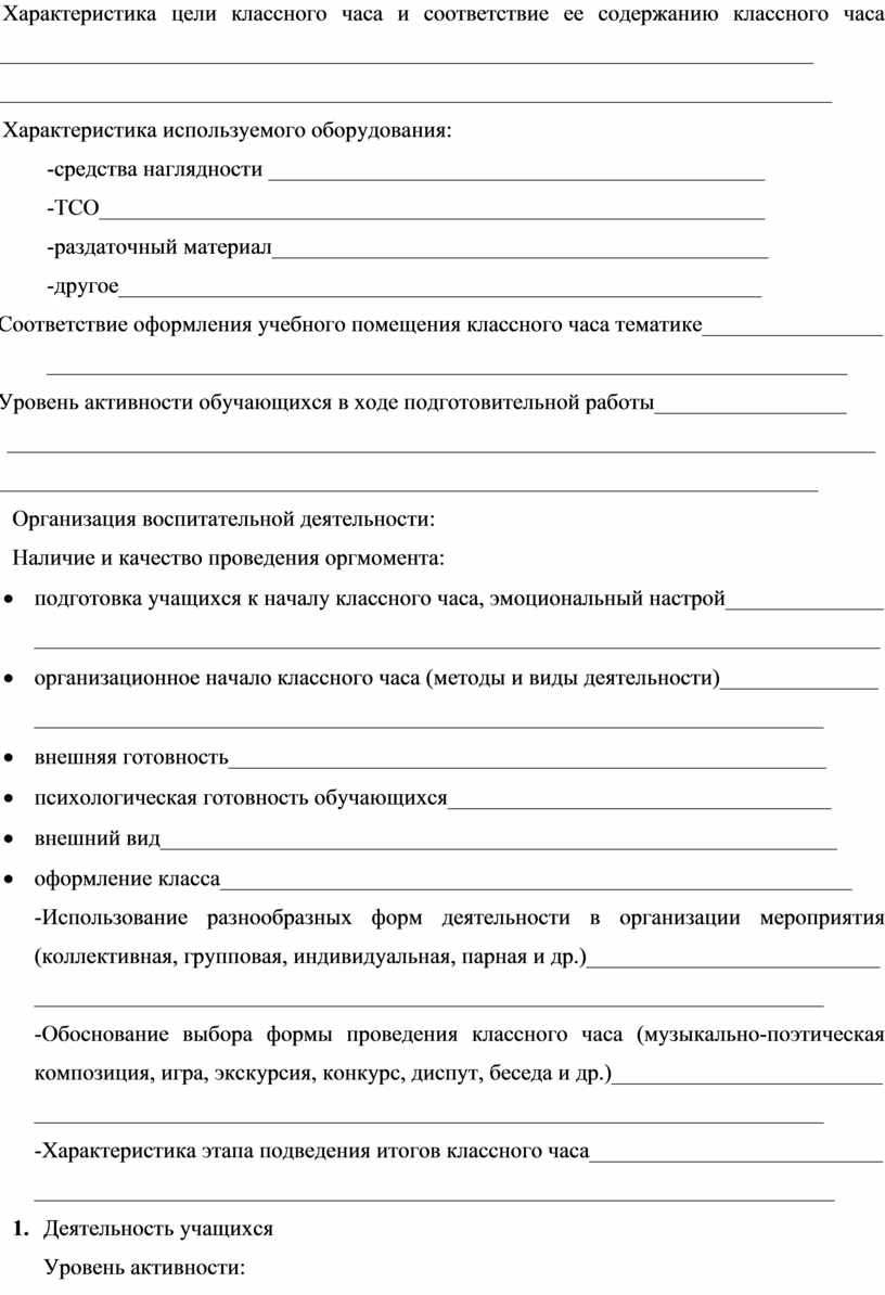 Характеристика цели классного часа и соответствие ее содержанию классного часа _________________________________________________________________________