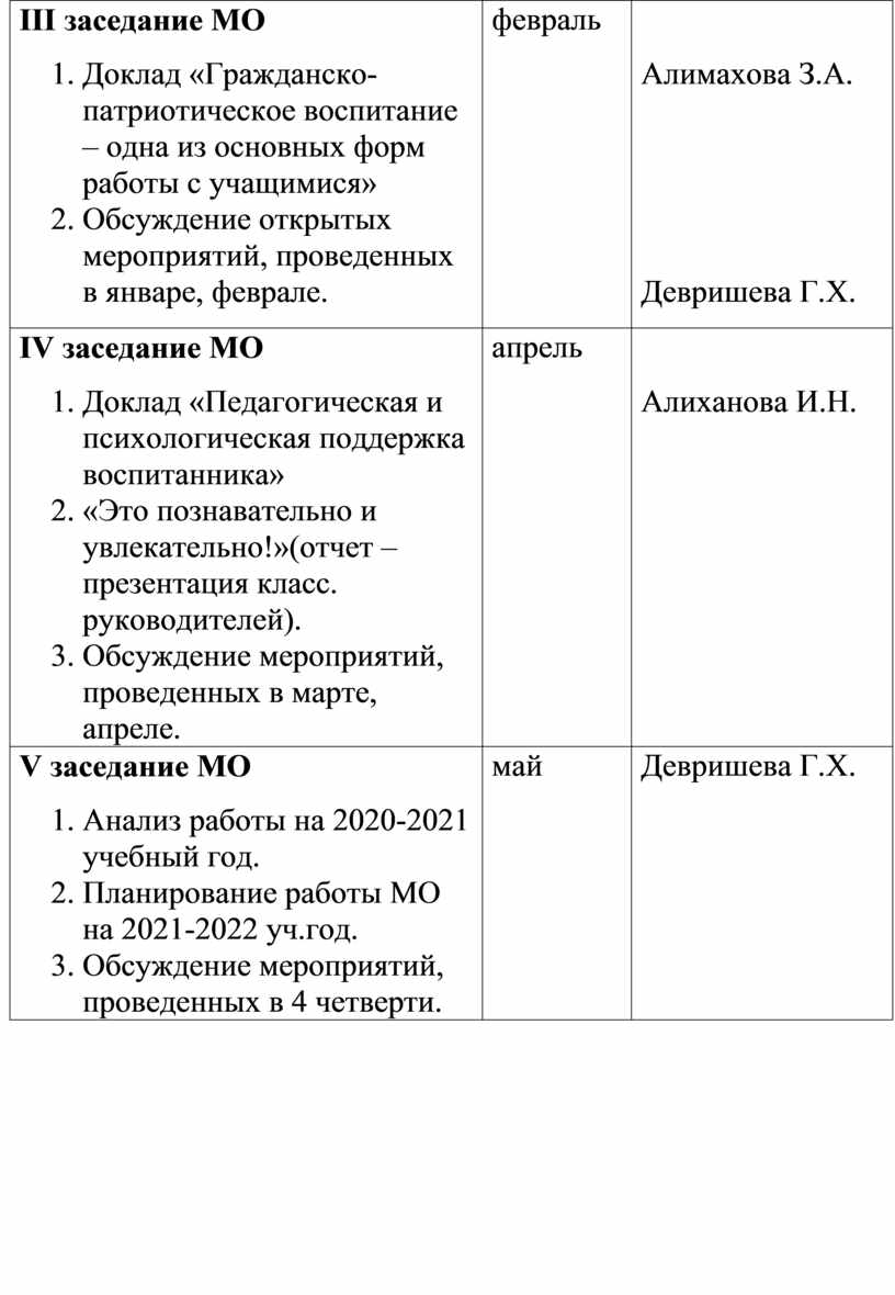3. Работа МО строится в соответствии с общешкольными задачами годовым планом.