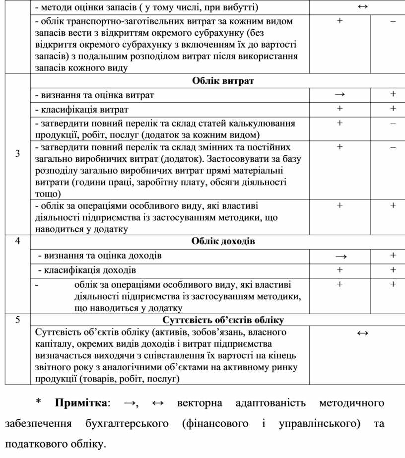 * Примітка: →, ↔ векторна адаптованість методичного забезпечення бухгалтерського (фінансового і управлінського) та податкового обліку.