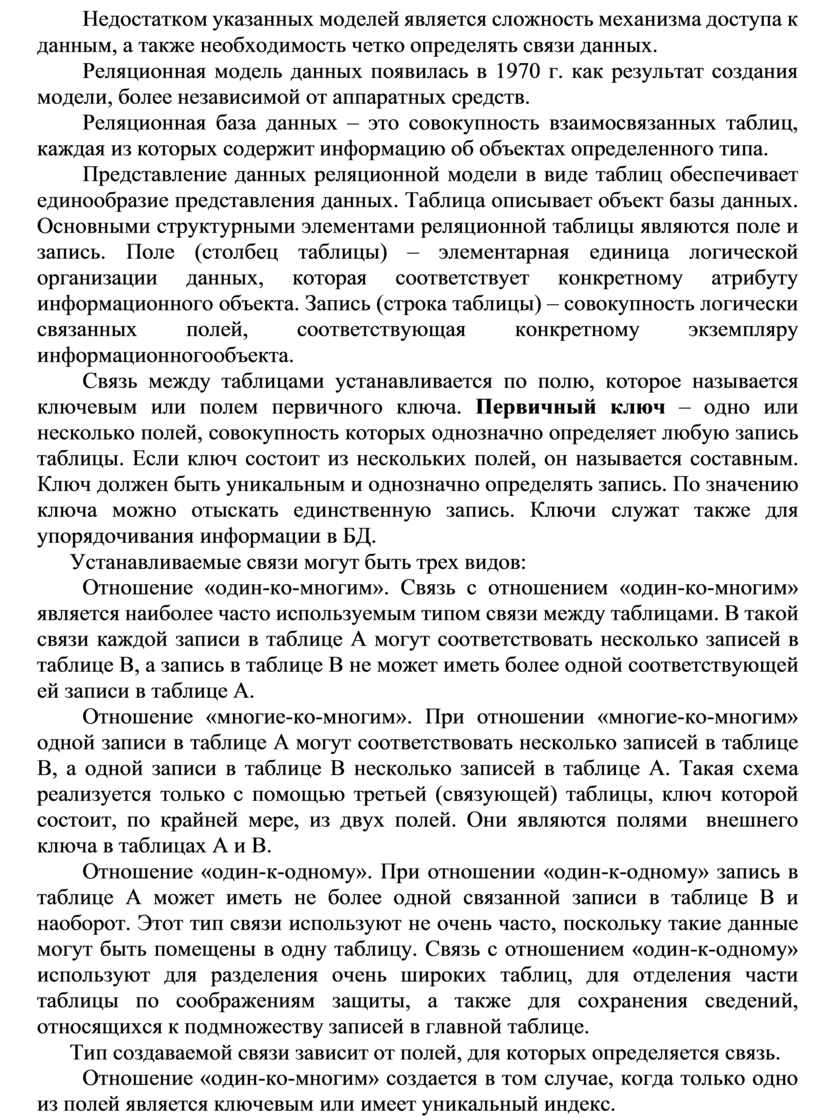 Недостатком указанных моделей является сложность механизма доступа к данным, а также необходимость четко определять связи данных.