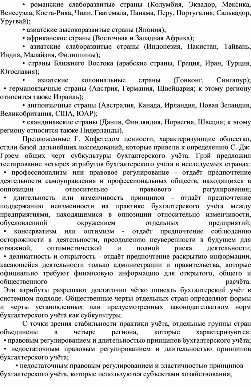бухгалтерского учёта в исследуемых странах: