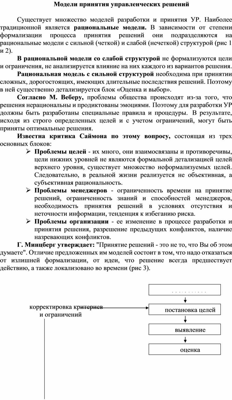 Модели принятия управленческих решений