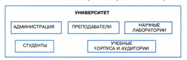 Как отмечалось выше, результатом анализа системы является определение ее состава. Если описание системы ограничить перечислением ее частей, то мы получим мод ель состава. Например, модель состава системы «Университет» представлена на рис. 1.3.