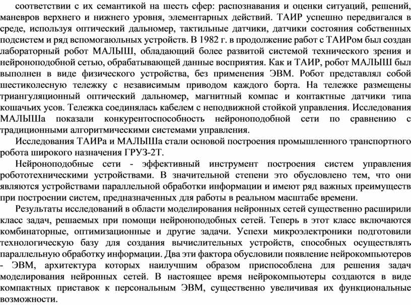 Нейроноподобные сети - эффективный инструмент построения систем управления робототехническими устройствами. В значительной степени это обусловлено тем, что они являются устройствами параллельной обработки информации и имеют ряд важных преимуществ при построении систем, предназначенных для работы в реальном масштабе времени.