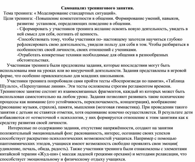 Самоанализ тренингового занятия.