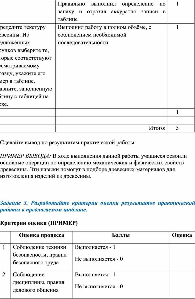 Задание 3. Разработайте критерии оценки результатов практической работы в предлагаемом шаблоне.