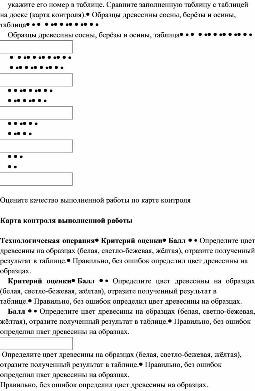 Правильно, без ошибок определил цвет древесины на образцах. Выполнил аккуратно записи в таблице |