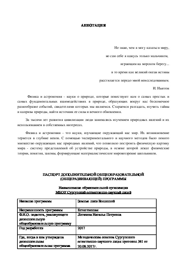(ОБЩЕРАЗВИВАЮЩАЯ) ПРОГРАММА