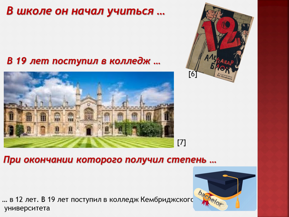… в 12 лет. В 19 лет поступил в колледж Кембриджского