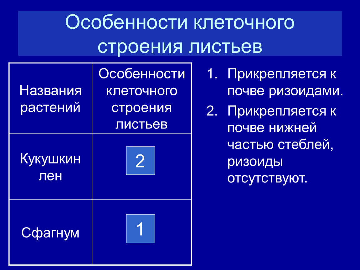 Названия растений | Особенности клеточного строения листьев |