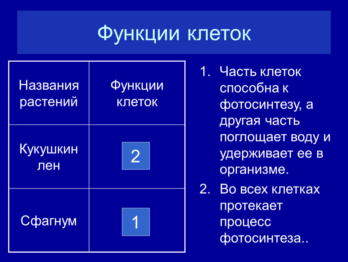 Названия растений | Функции клеток |