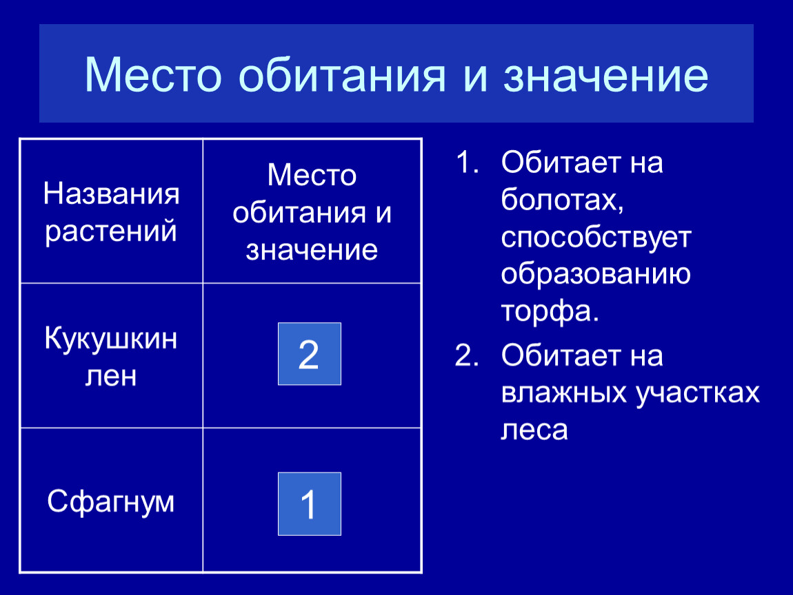 Названия растений | Место обитания и значение |