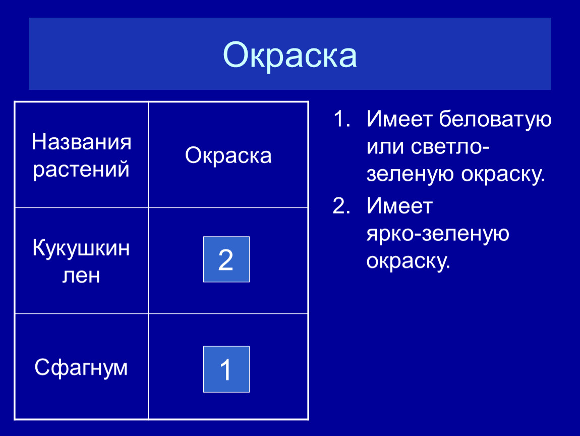 Названия растений | Окраска |