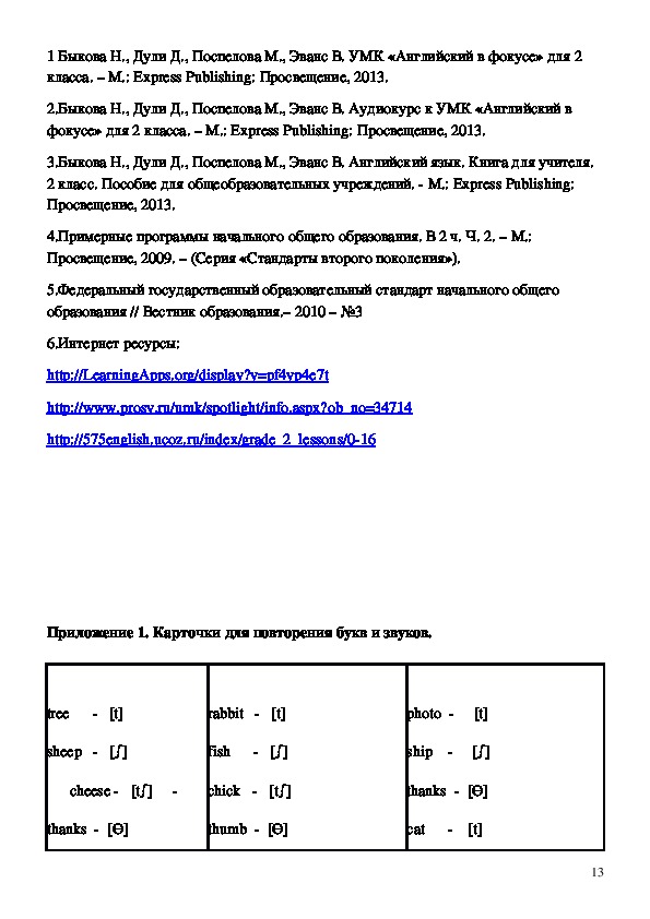 фокусе» для 2 класса. – М.: Express Publishing: Просвещение, 2013.