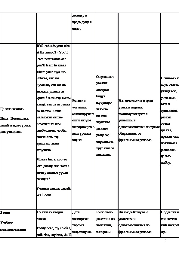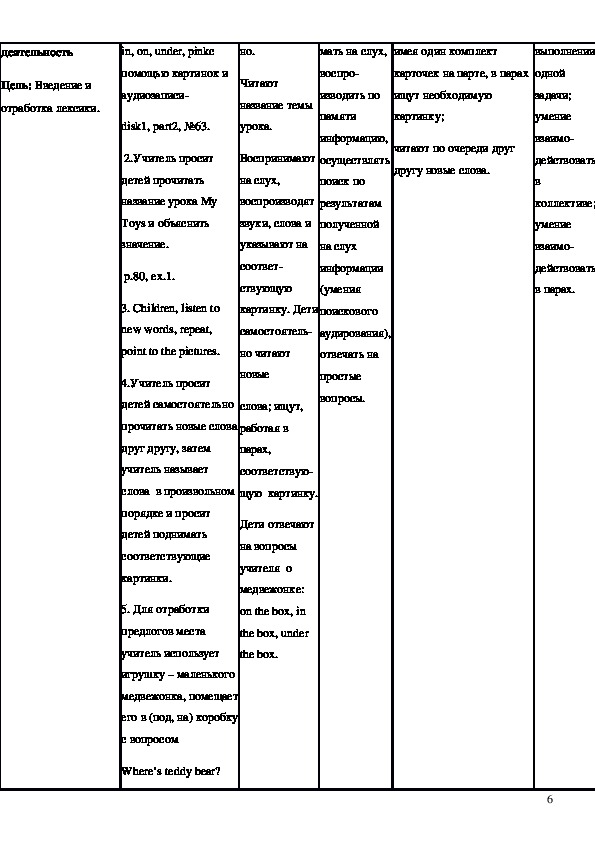 Цель: ознакомление учащихся с названиями игрушек, с употреблением предлогов места.