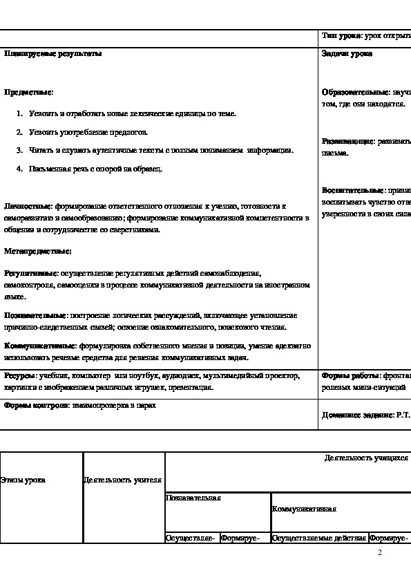 Технологическая карта составлена учителем английского языка Айснер К.Ю.