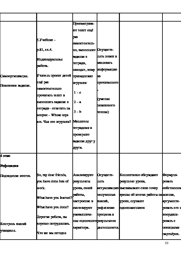причинноследственных связей; освоение ознакомительного, поискового чтения.