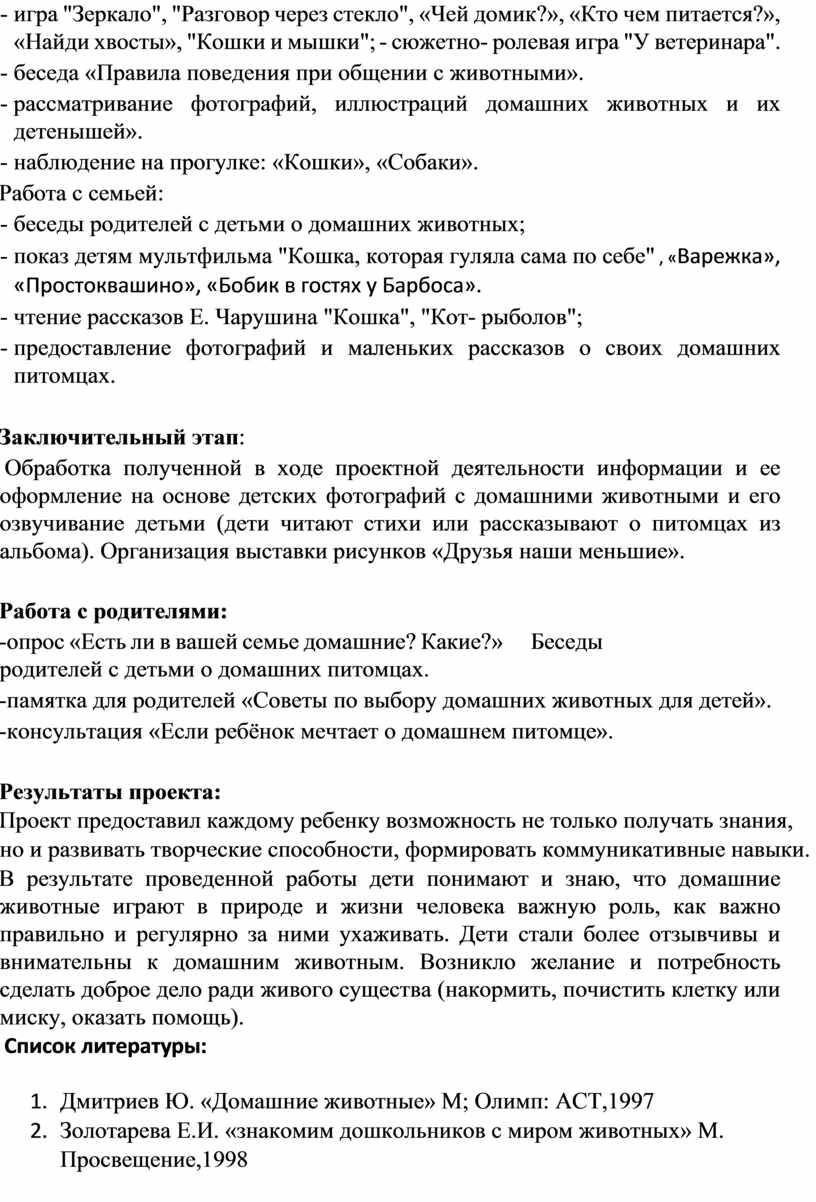 1. Дмитриев Ю. «Домашние животные» М; Олимп: АСТ,1997