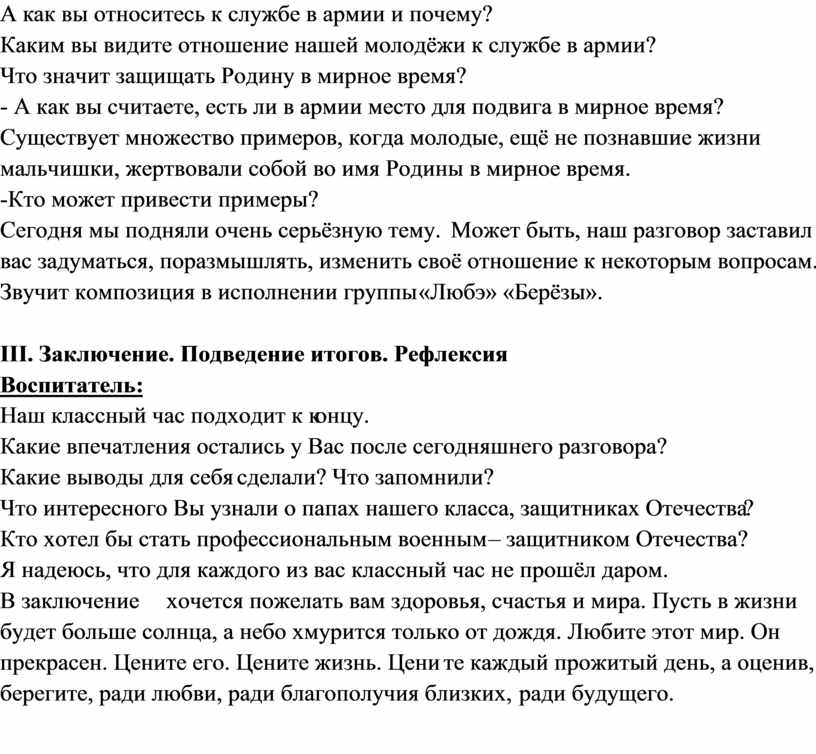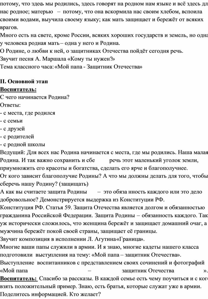Тема классного часа: «Мой папа - Защитник Отечества»