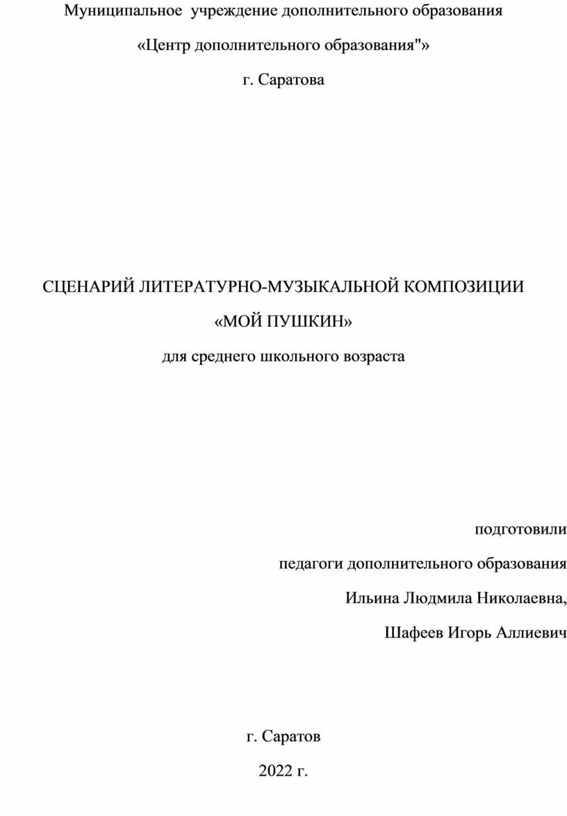 СЦЕНАРИЙ ЛИТЕРАТУРНО-МУЗЫКАЛЬНОЙ КОМПОЗИЦИИ