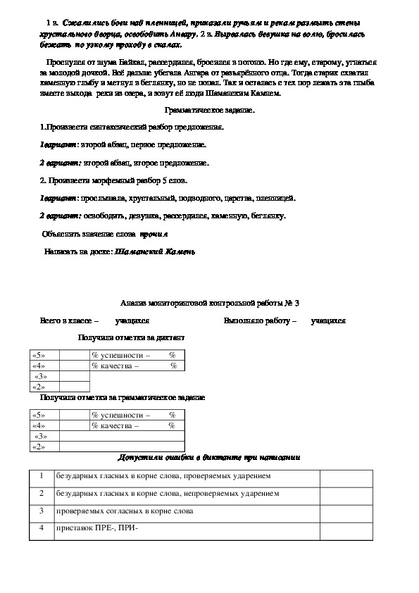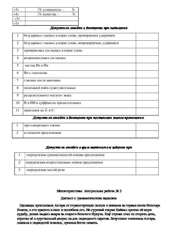 Мониторинговые контрольные работы по русскому языку 7 класс. Используемая литература: О.В.Беляева, О.А.Даценко «Универсальные поурочные разработки по русскому языку» 7 класс. Москва «ВАКО» 2011 г. Мониторинговые контрольные работы включаю в себя диктант с грамматическим заданием. Также представлен образец анализа мониторинговой контрольной работы.Мониторинговые контрольные работы по русскому языку 7 класс.