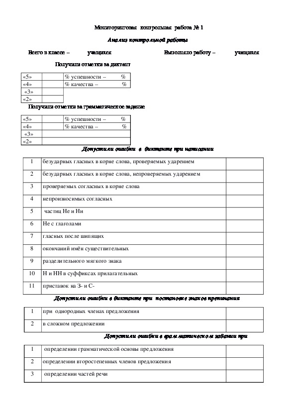 Анализ контрольной работы