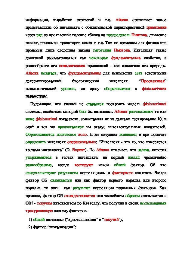 системы, свойством который был бы интеллект. Айзенк разглядывают те или