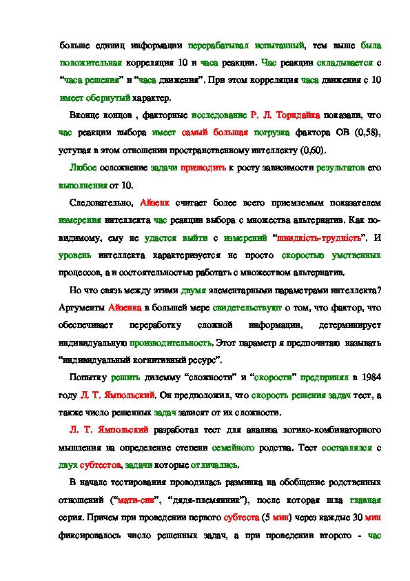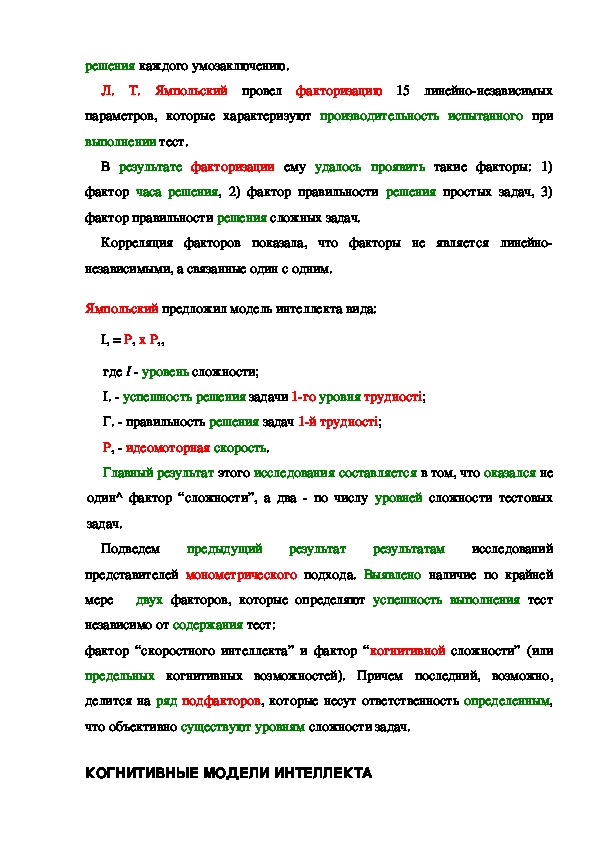 году Л. Т. Ямпольский. Он предположил, что скорость решения задач тест, а