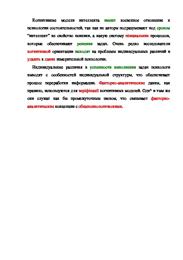 КОГНИТИВНЫЕ МОДЕЛИ ИНТЕЛЛЕКТАКогнитивные модели интеллекта имеют косвенное отношение к
