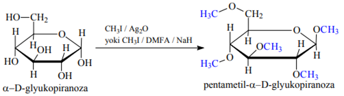 Masalan, yodid metil yoki dimetil sulfat kabi kuchli alkillovchi vositalardan foydalanilganda, bunday konvertatsiya Monosaxaridning barcha gidroksil guruhlariga ta’sir qiladi.