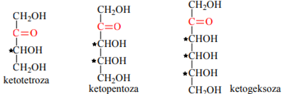 Kеtоzalar C atоmlari sоniga ko‘ra tеtrоzalar, pеntоzalar, gеksоzalar va h. turlarga bo‘linadi. Ular tеgishli aldоzalarning izоmеrlaridir:
