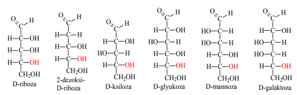 Eng oddiy aldoza glitseraldegidning n=1 bilan ikki xil stereoizomer shaklida bo’lishi mumkin.