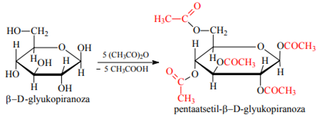 8. Mоnоsaхaridlarga yoki saхaratlarga atsillоvchi agеntlar ta’sir qilinganda ularning yopiq zanjirli shaklining murakkab efirlari оlinadi. Masalan: