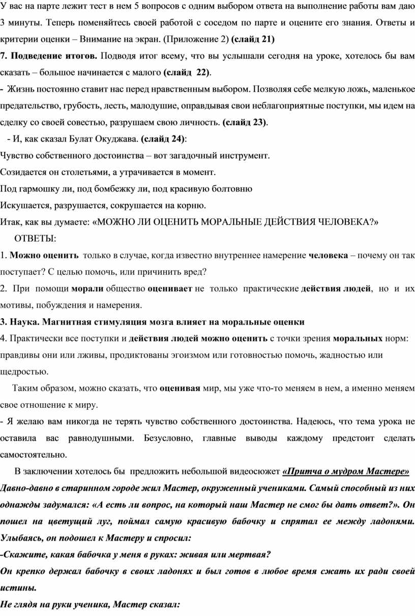 Итак, как вы думаете: «МОЖНО ЛИ ОЦЕНИТЬ МОРАЛЬНЫЕ ДЕЙСТВИЯ ЧЕЛОВЕКА?»