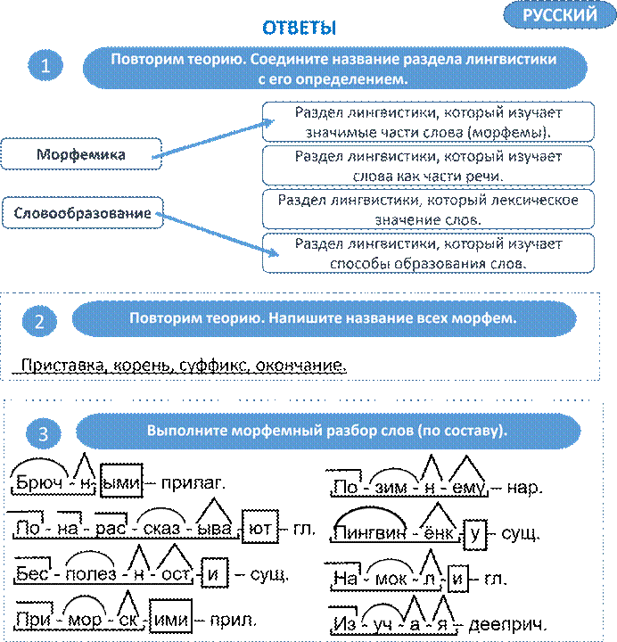 2 Повторим теорию. Напишите название всех морфем.