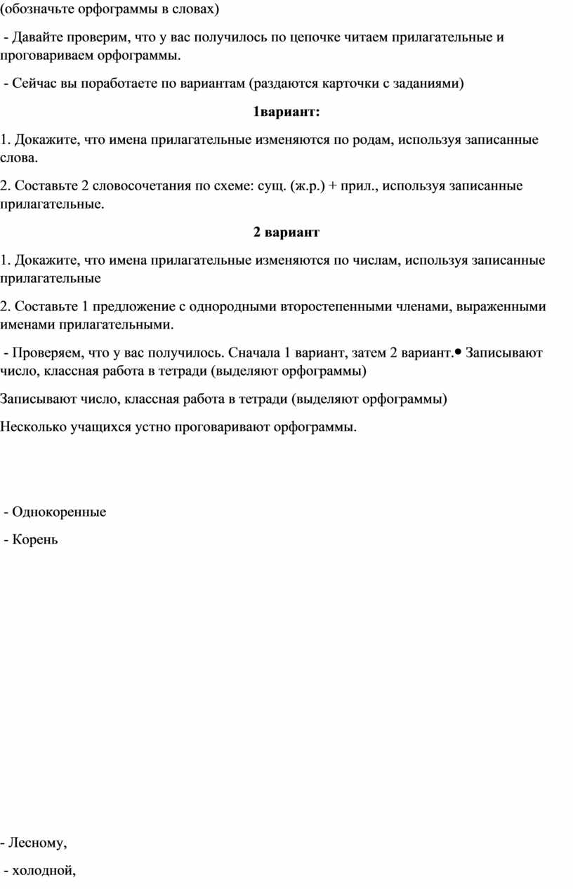 - Лесному, - холодной, - чудесного, - Однокоренные - Корень - Это имена прилагательные, а остальные слова в рядах – имена существительные. - Изменяются по родам, числам, падежам, относятся к имени существительному.