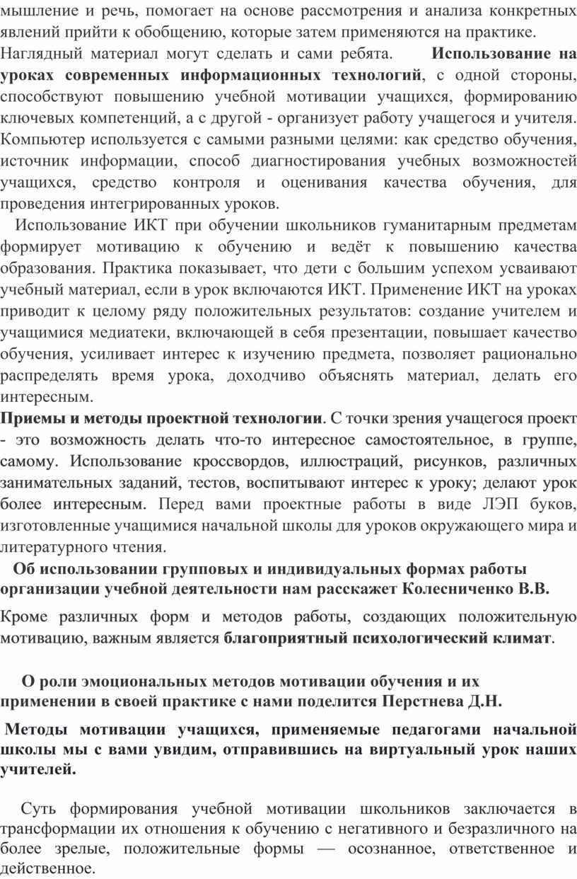Методы мотивации учащихся, применяемые педагогами начальной школы мы с вами увидим, отправившись на виртуальный урок наших учителей.
