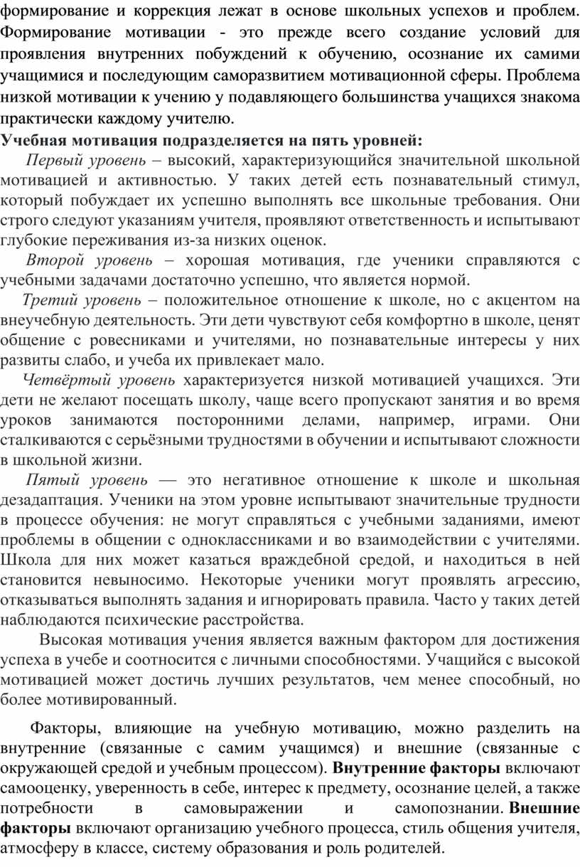 Формирование и развитие учебной мотивации является важной задачей. Это требует систематической работы, применения определенных методов и форм организации учебного процесса, а также творческого подхода со стороны педагога.