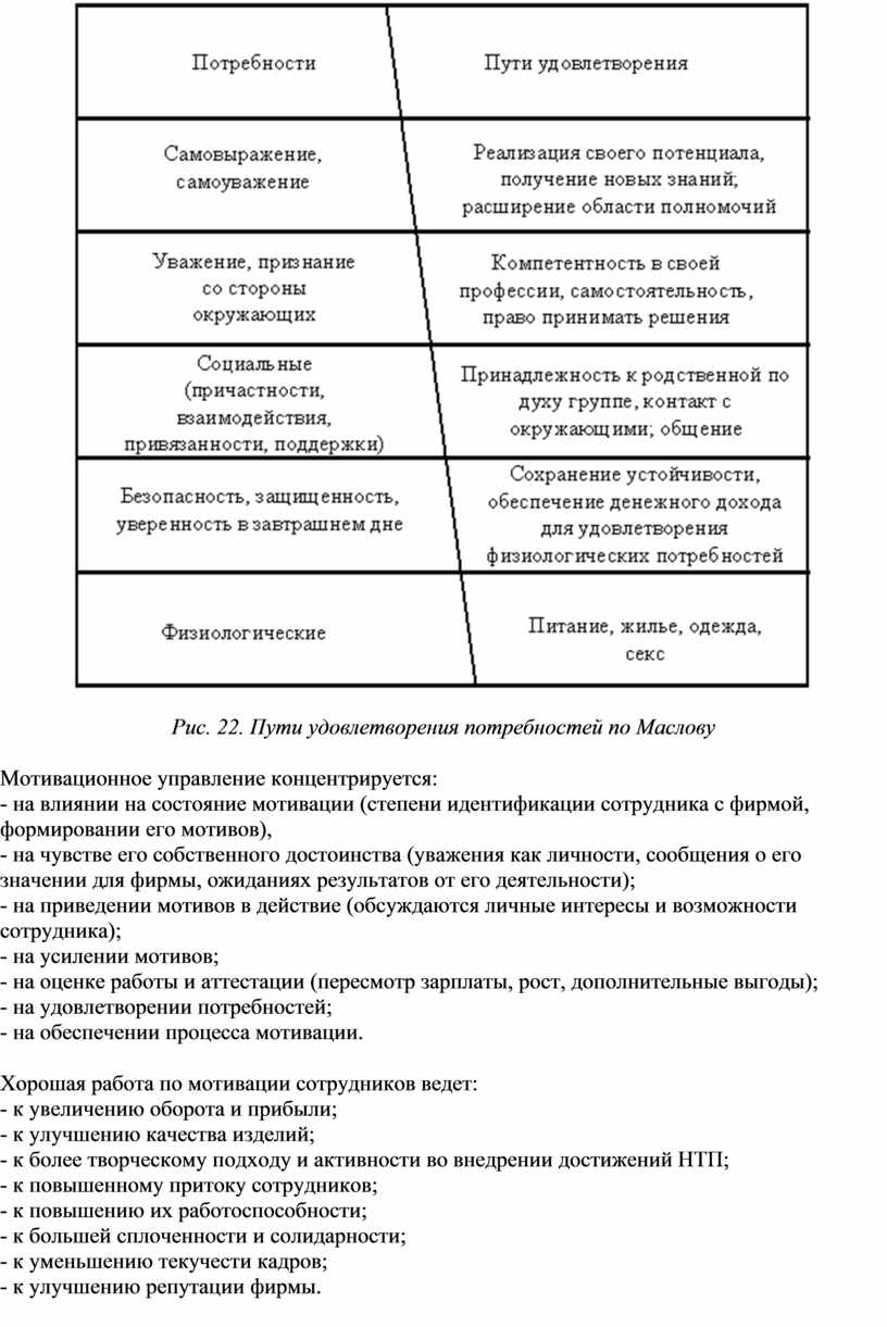 Пути удовлетворения потребностей по Маслову представлены на рис. 22.
