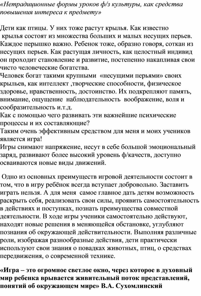 «Нетрадиционные формы уроков ф/з культуры, как средства повышения интереса к предмету»