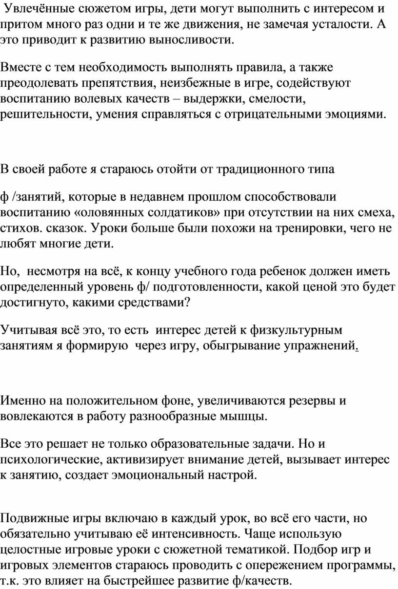 ф /занятий, которые в недавнем прошлом способствовали воспитанию «оловянных солдатиков» при отсутствии на них смеха, стихов. сказок. Уроки больше были похожи на тренировки, чего не любят многие дети.