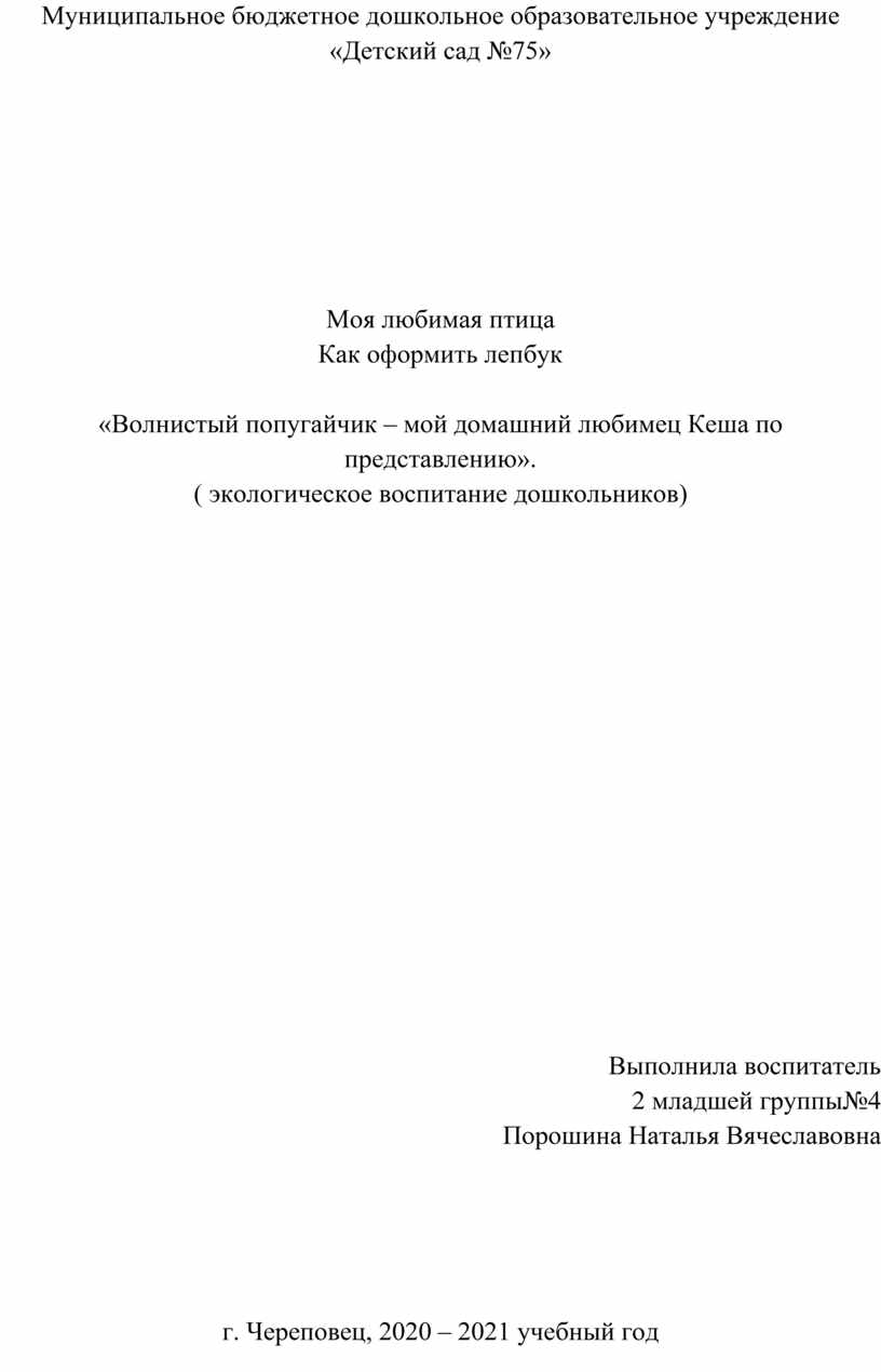 «Волнистый попугайчик – мой домашний любимец Кеша по представлению».