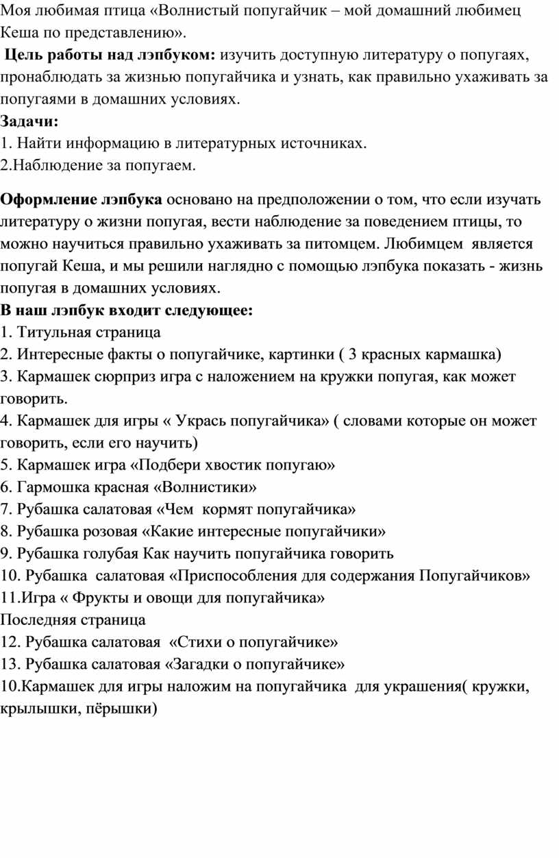 Цель работы над лэпбуком: изучить доступную литературу о попугаях,
