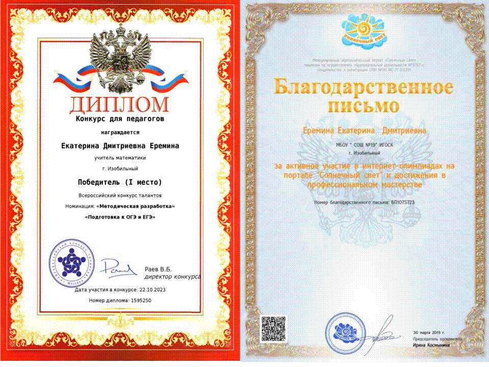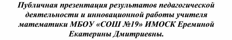 Публичная презентация результатов педагогической деятельности и инновационной работы учителя математики МБОУ «СОШ №19» ИМОСК Ереминой Екатерины Дмитриевны.