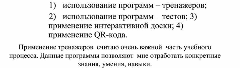 2) использование программ – тестов; 3) применение интерактивной доски; 4) применение QR-кода.